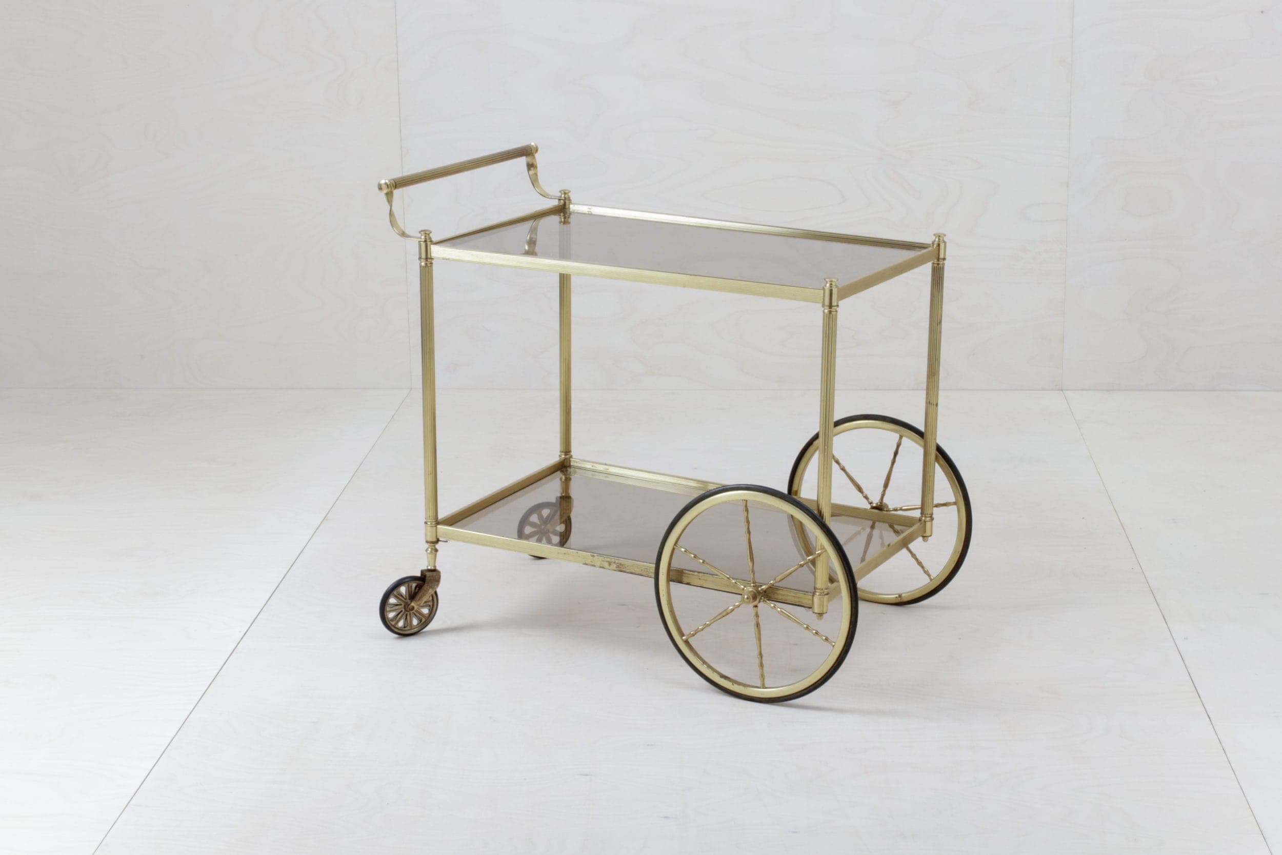 The Agatha bar trolley has an elegant, golden frame. We rent the golden trolley together with two corresponding glass shelves. The bar trolleys are ideal for small decorations, for presenting selected goods or very traditionally, for a whisky glass carafe and chic lead crystal glasses.