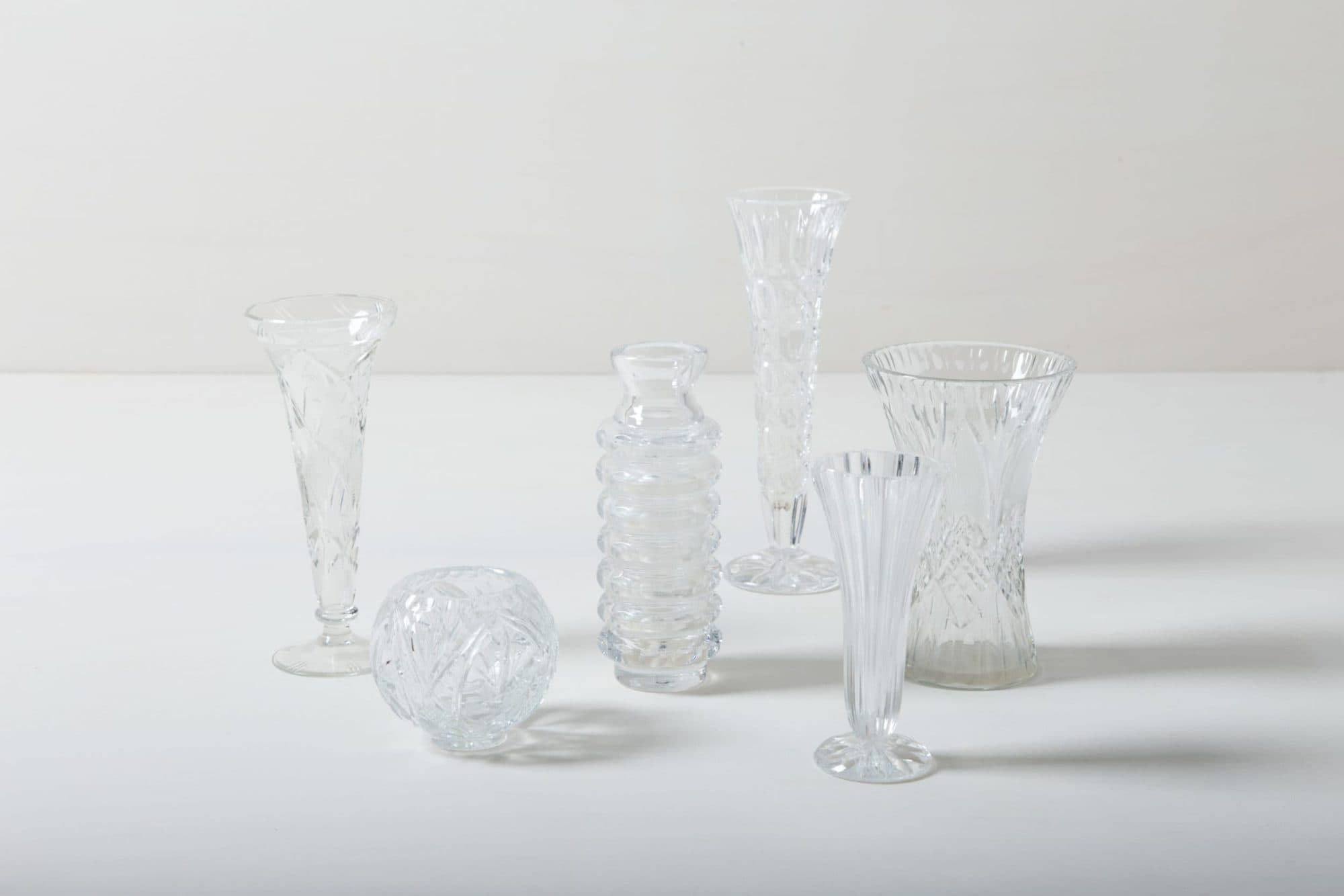 Our crystal glass vases are ideal for the elegant presentation of small bouquets or single flowers. In addition to the vintage glass vases, we also rent out other crystal glass products. Combined, you can create a romantic, sophisticated vintage look that will be remembered.