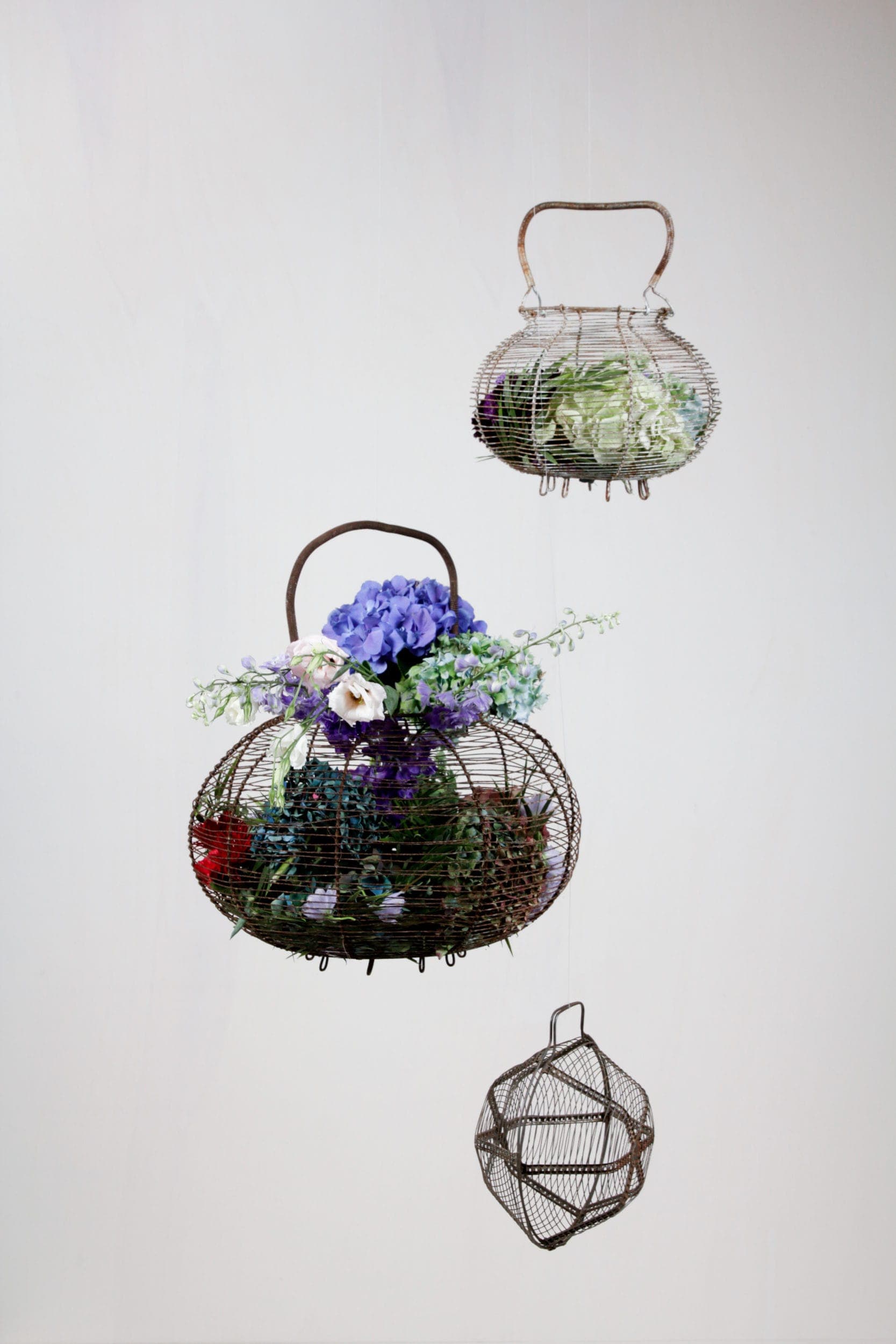 We recommend to use the mismatching egg baskets Turi as hanging flower baskets or hanging accessories. The egg baskets made of metal have different sizes and are often rented for indoor and outdoor events.