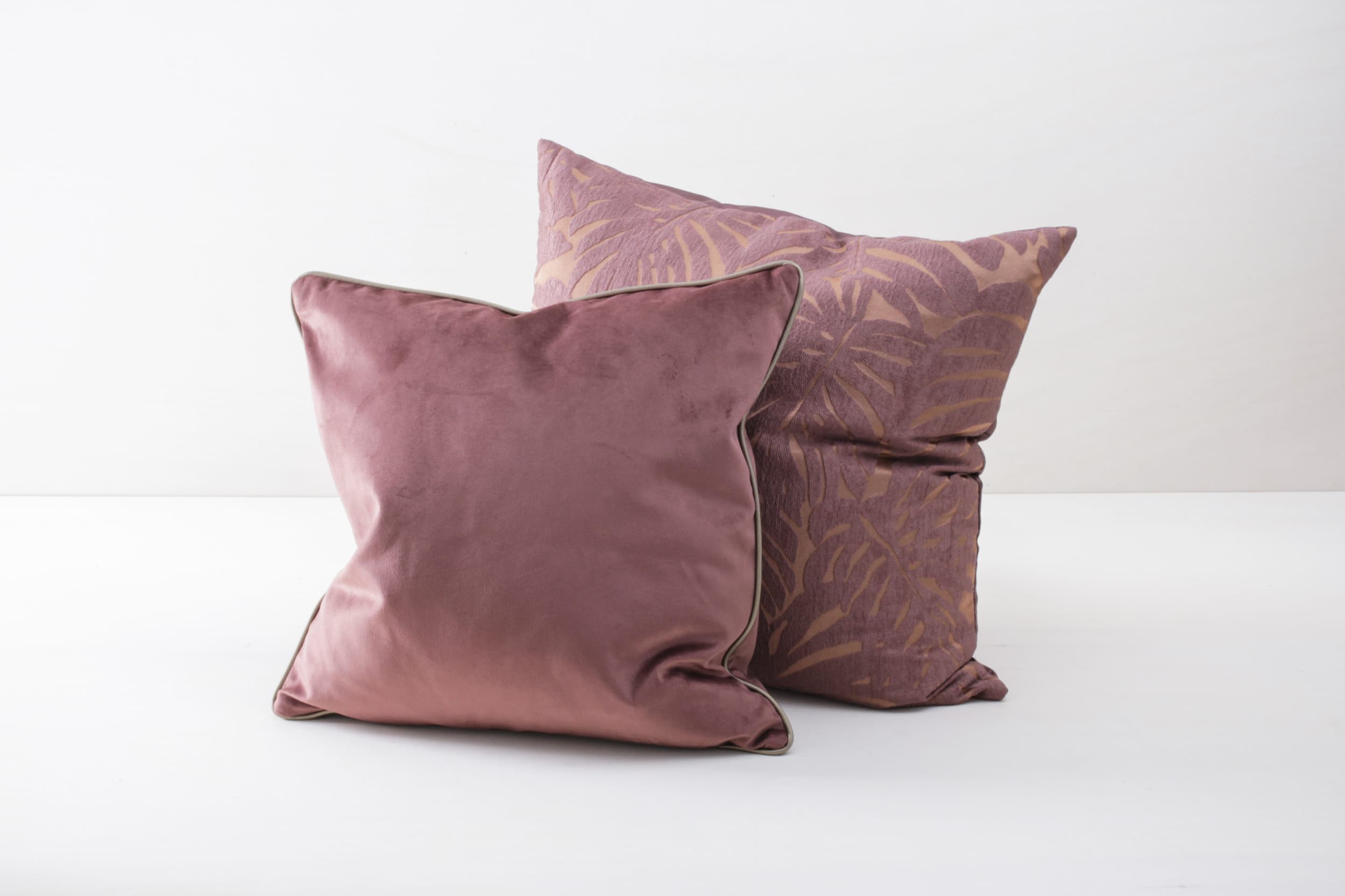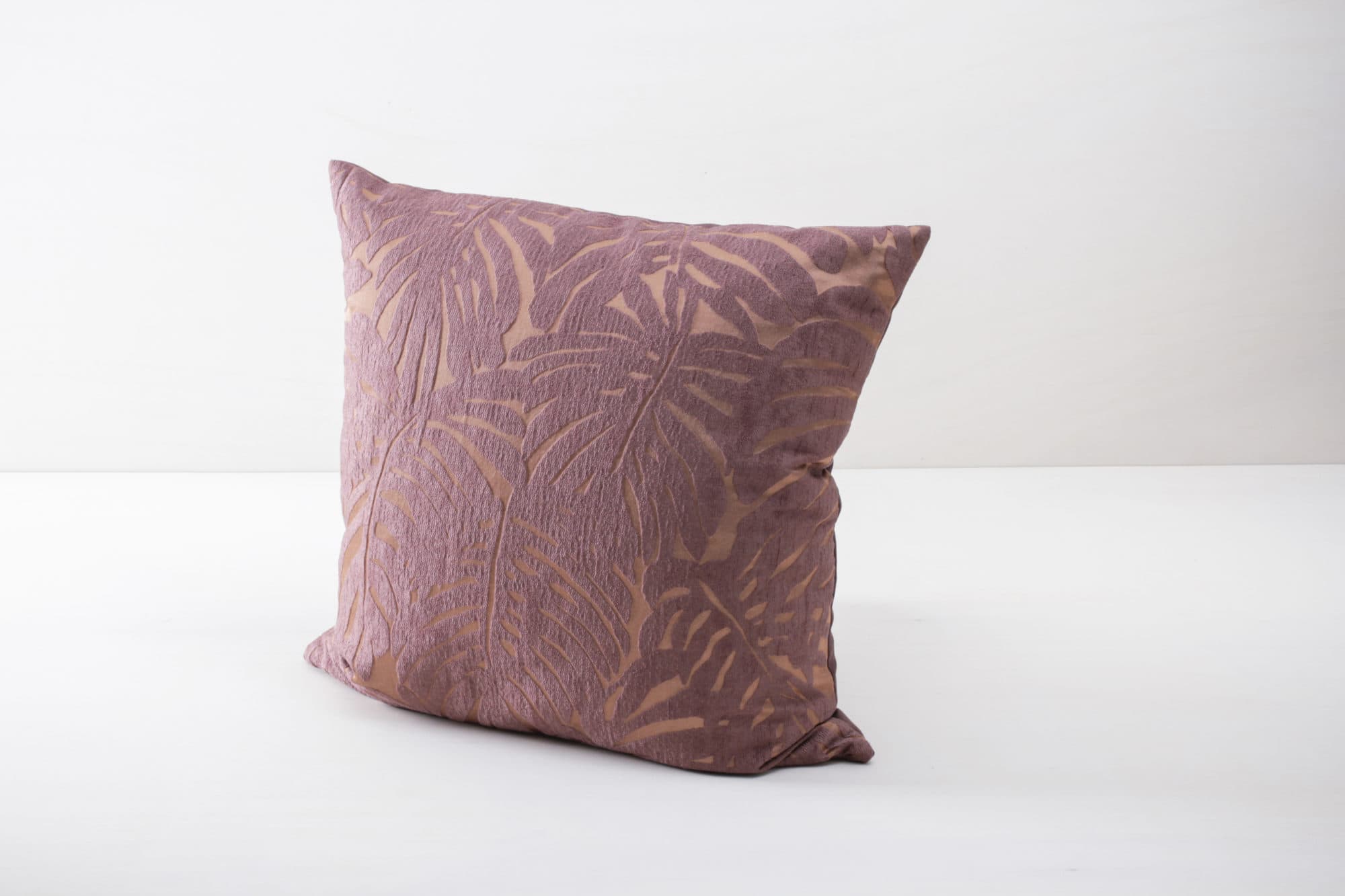 The two Monica pillows have a slightly shiny cotton surface. The leaf pattern gives the pillow that certain something and makes combining it with other colours and patterns exciting and classy.