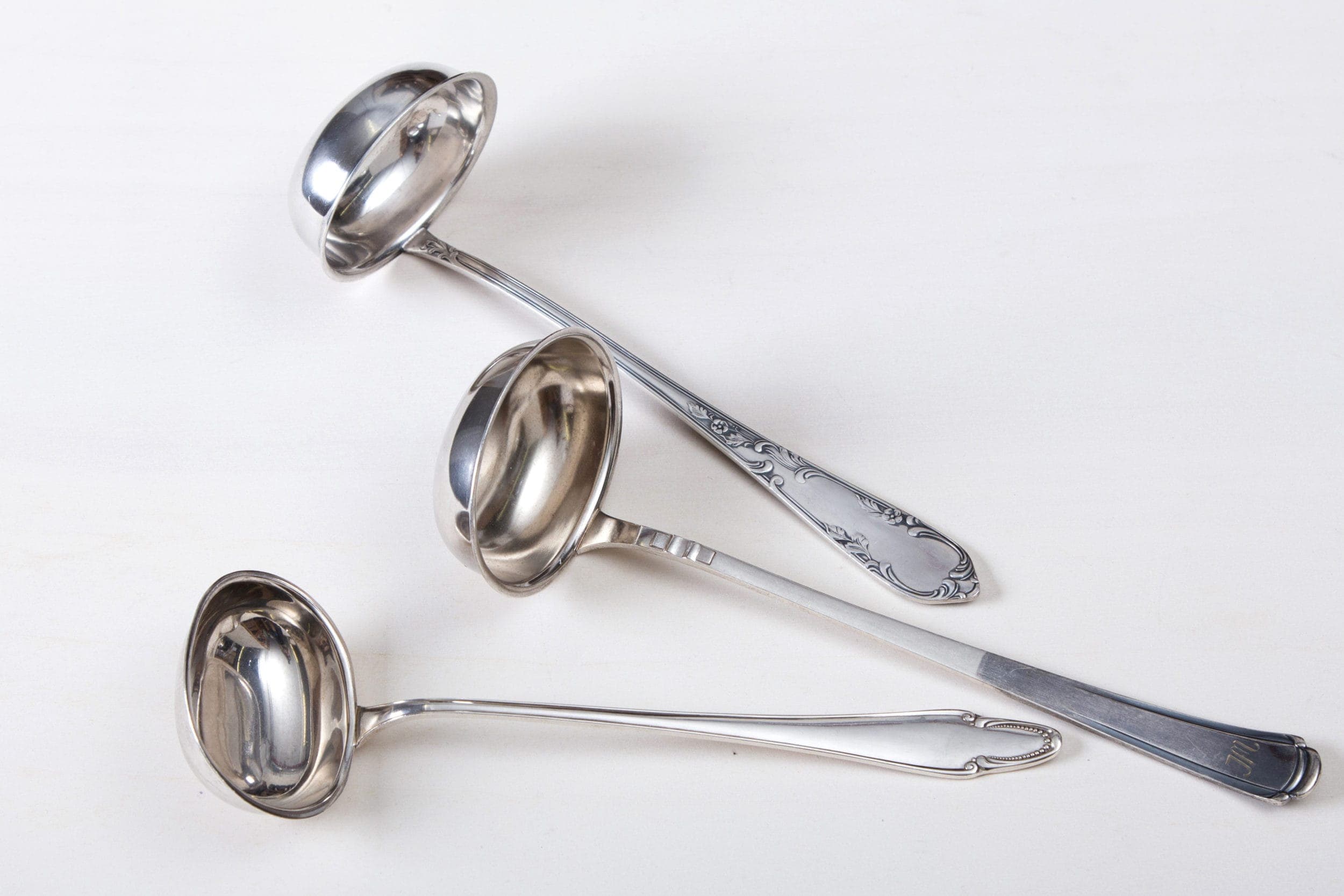 You can rent gorgeous soup ladles with different patterns from us. The silver-plated, mismatching collection of the Antonia series is for true connoisseurs and lovers of details. The soup ladles are part of a beautiful silver-plated rental cutlery with elegant patina.