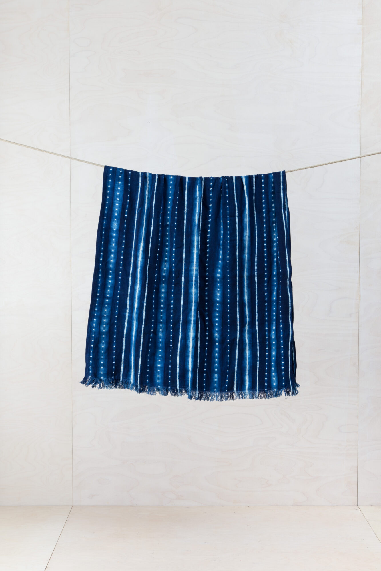 The Vincente cotton throw is from Guinea. The blanket is hand woven and hand dyed in indigo blue. This Indigo Blanket is perfect for decorating lounge, picnic and garden parties.