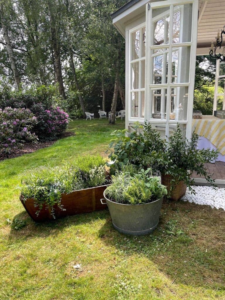 During Saturday’s lunch on a small island, we decorated the buffet with a lavish and wild-looking floral decoration. Numerous flowers, herbs, and plants adorned our vintage metal tubs “Ernesto”, metal buckets “Enrique”, and champagne cooler “Paloma”. The harmonious interplay of our event furniture and decorations with the beauty of untouched nature created a uniquely picturesque atmosphere.