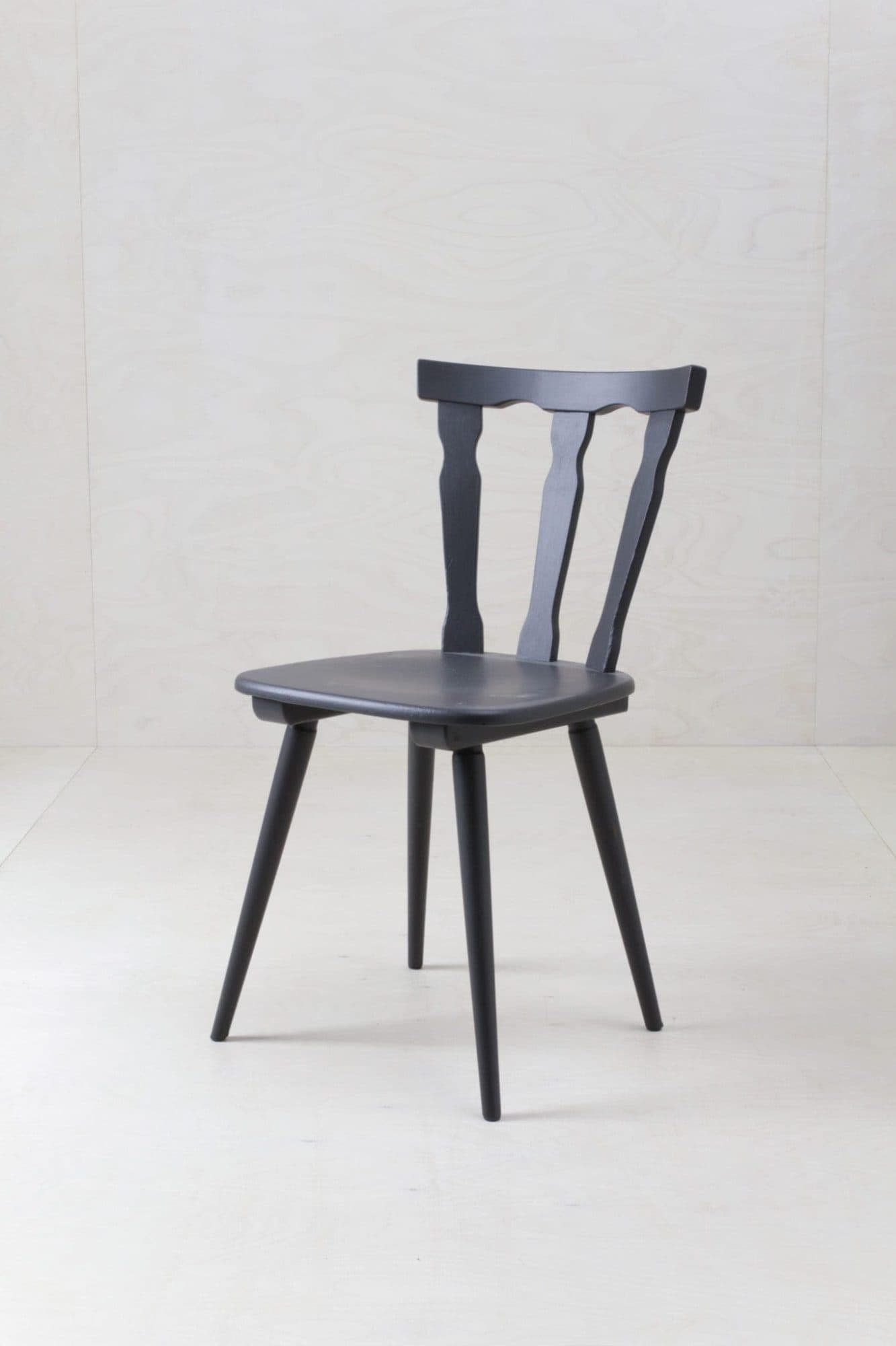 Wir vermieten Bauernstuhl Yago in einer Stückzahl von bis zu vier Stühlen. Der edle, matt-schwarz lackierte Holzstuhl eignet sich zum Dekorieren und zur Bestuhlung von Tischen.