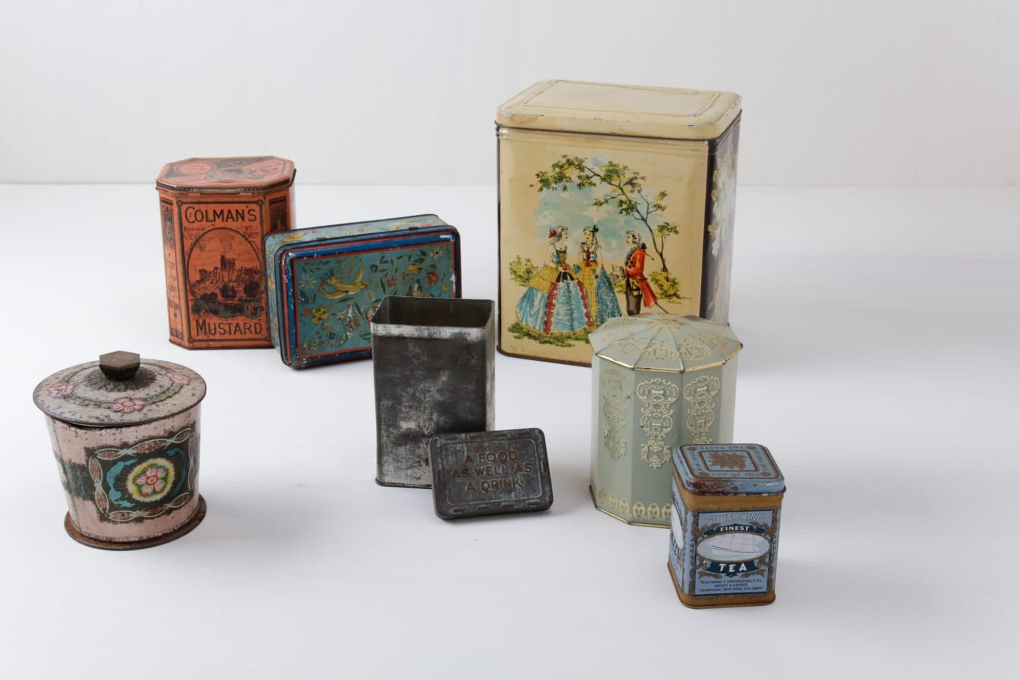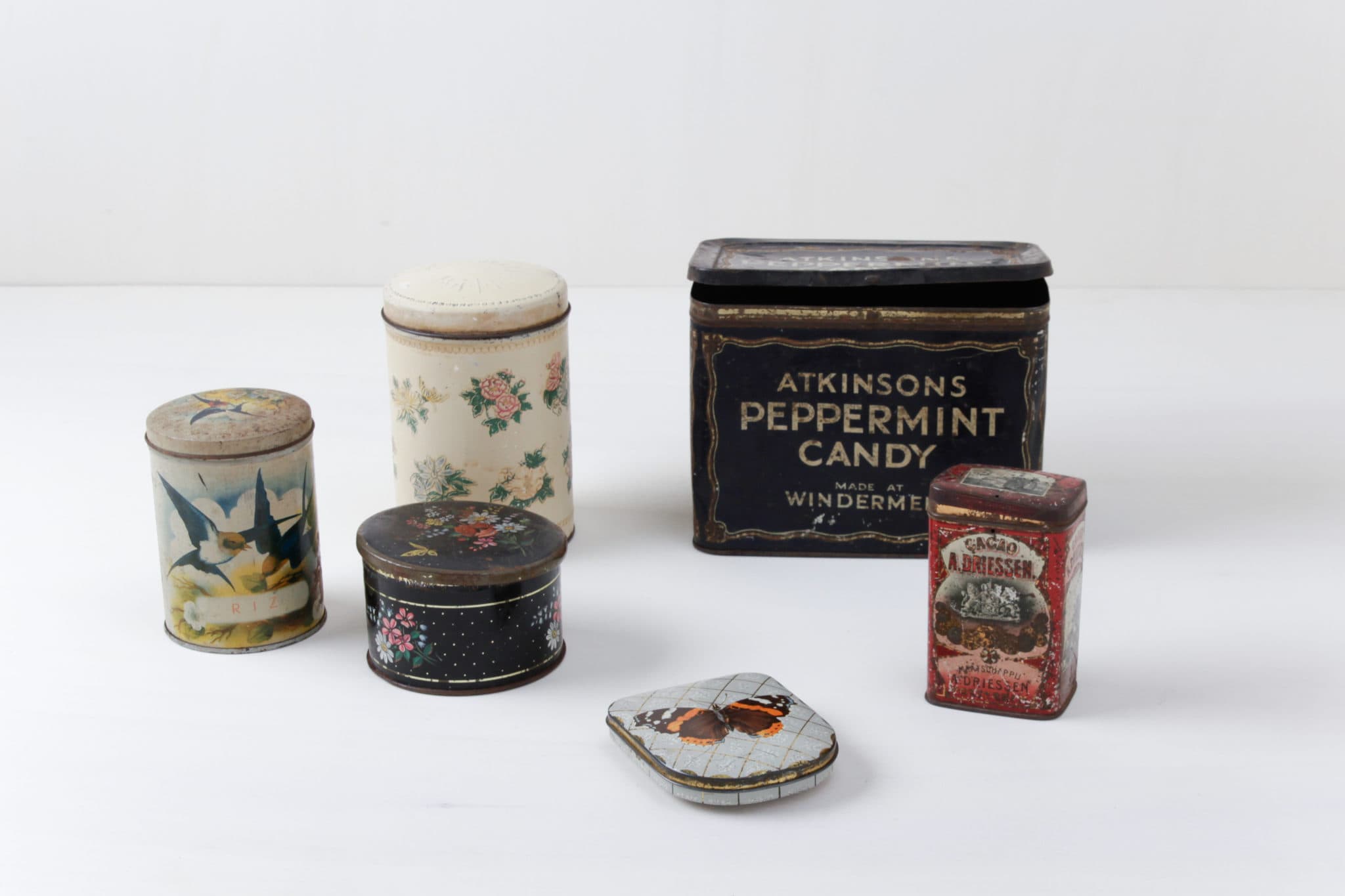 Du möchtest gleich mehrere, unterschiedliche vintage Blechdosen mieten? Du kannst verschiedene Blechdosen perfekt miteinander kombinieren um einen Raum mit Liebe zum Detail im Mismatching Look zu gestalten.