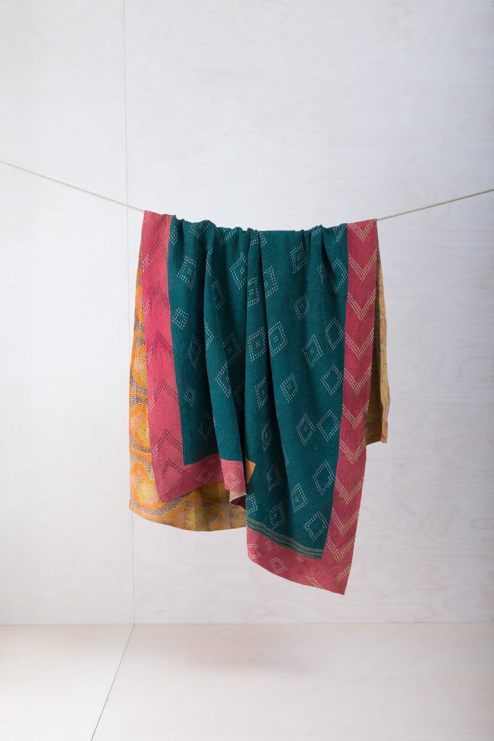 Viele unserer bunten und einzigartigen Decken sind alte Vintage Stoffe die in neue Form gebracht wurden. Die Tolle Muster und diverse Farbkombinationen zeichnen die Decke Pompeya zur Miete aus.