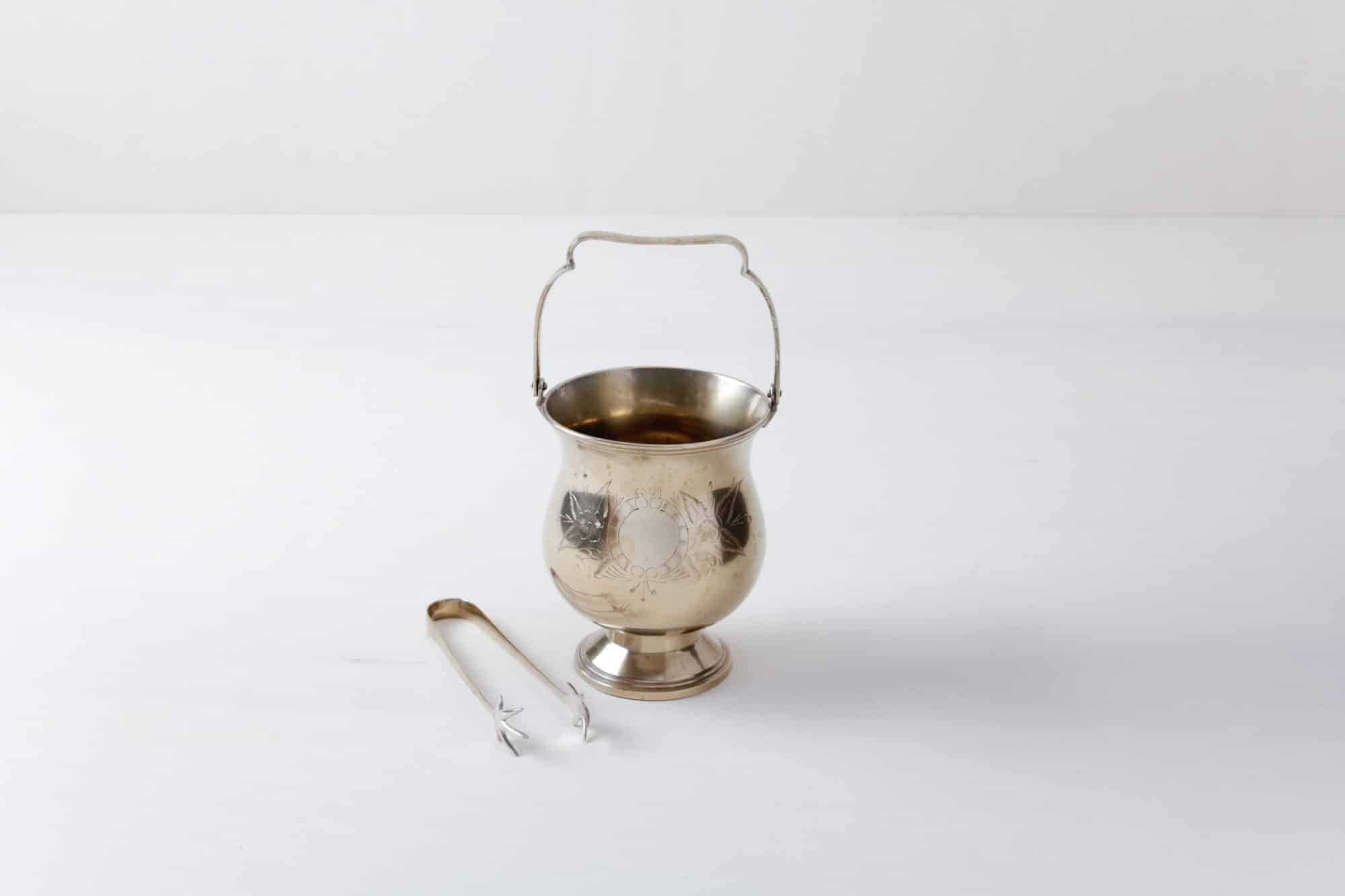Der zarte, silberne Eiswürfelbehälter Consuelo ist einer der wenigen Eiswürfelbehälter, den wir mit Zange vermieten. Einzeln oder mit anderen Behältern kombiniert sind sie ein hinreißendes und elegantes Detail an der Bar, auf dem Tisch oder am Buffet.