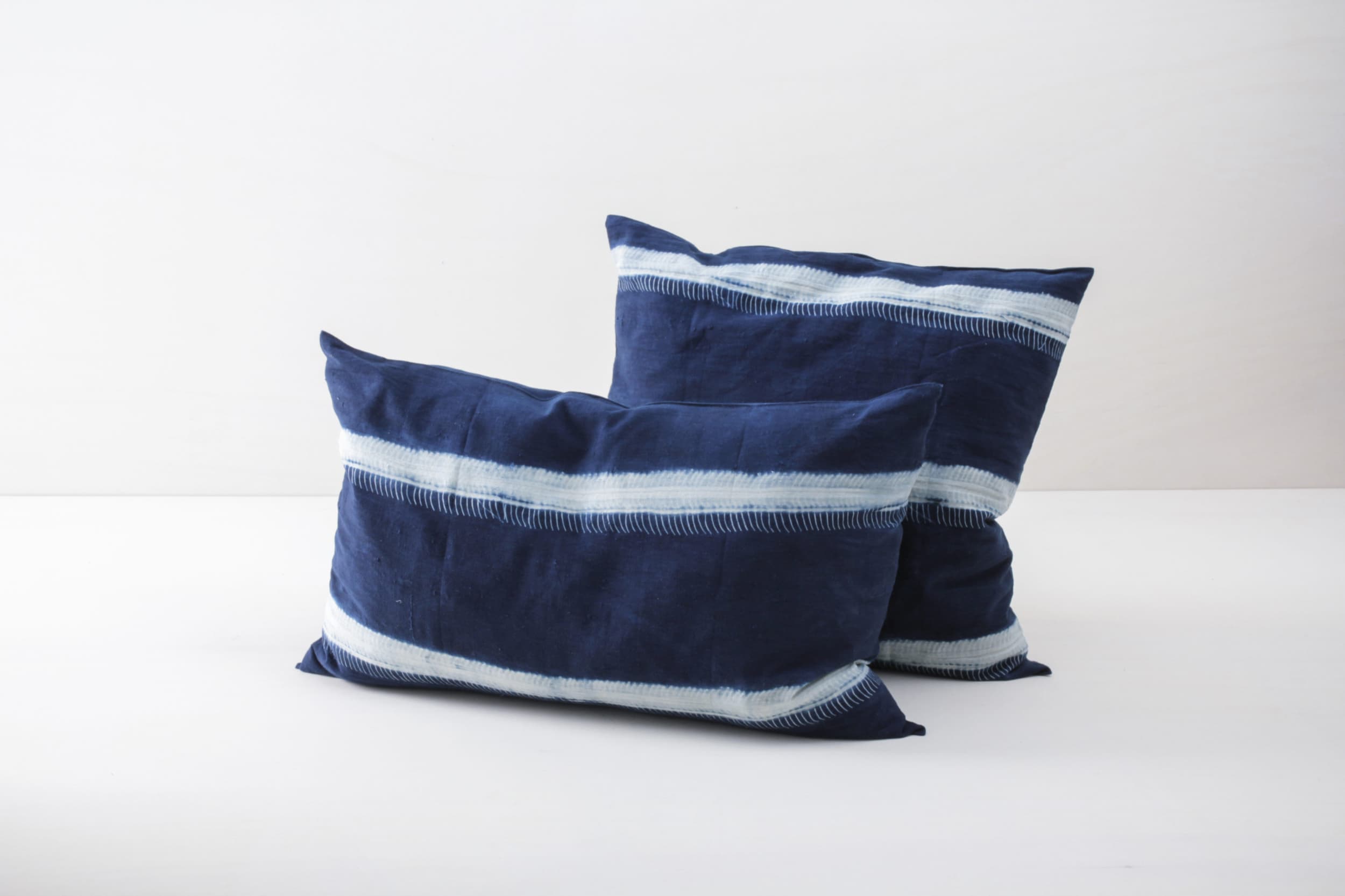 Die Walter Baumwollkissen sind aus Guinea. Die Kissen sind handgegewoben, in Indigo Blau handgefärbt und rechteckig. Die Indigo Kissen eignen sich hinreißend um Lounge, Picknick und Gartenparty zu dekorieren.