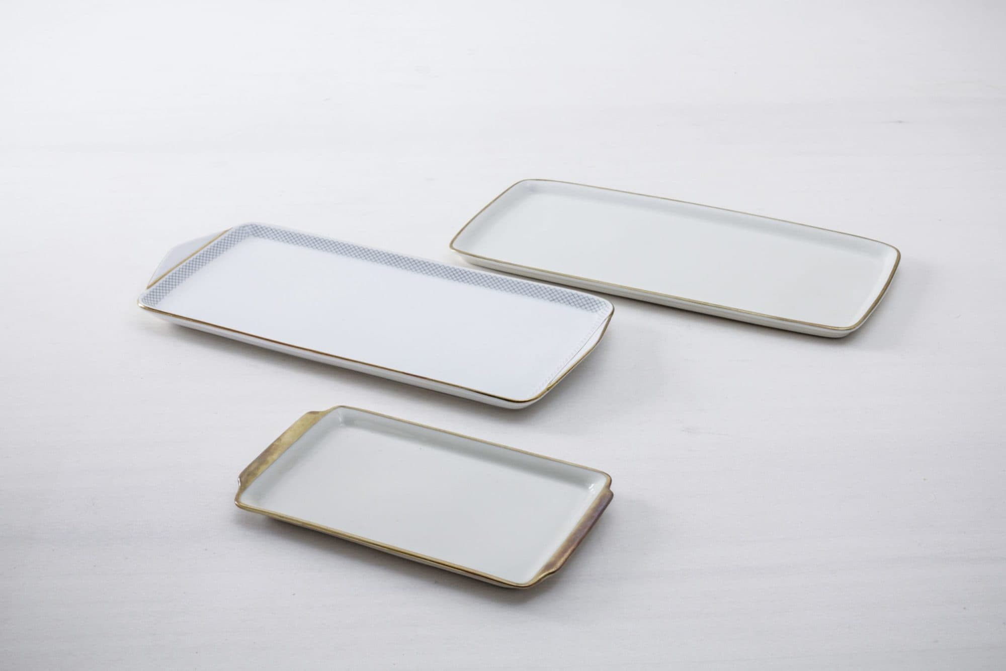 Unsere Kuchenplatten aus zartem, weißen Porzellan mit glänzendem Goldrand setzten vom Kuchen über Cupcakes bis zu zarten Petit Fours alles perfekt in Szene. Aber auch zum Arrangieren von kleinen Blumenvasen oder als Minitablett für Schnapsgläschen eignen sich die Servierplatten ideal.