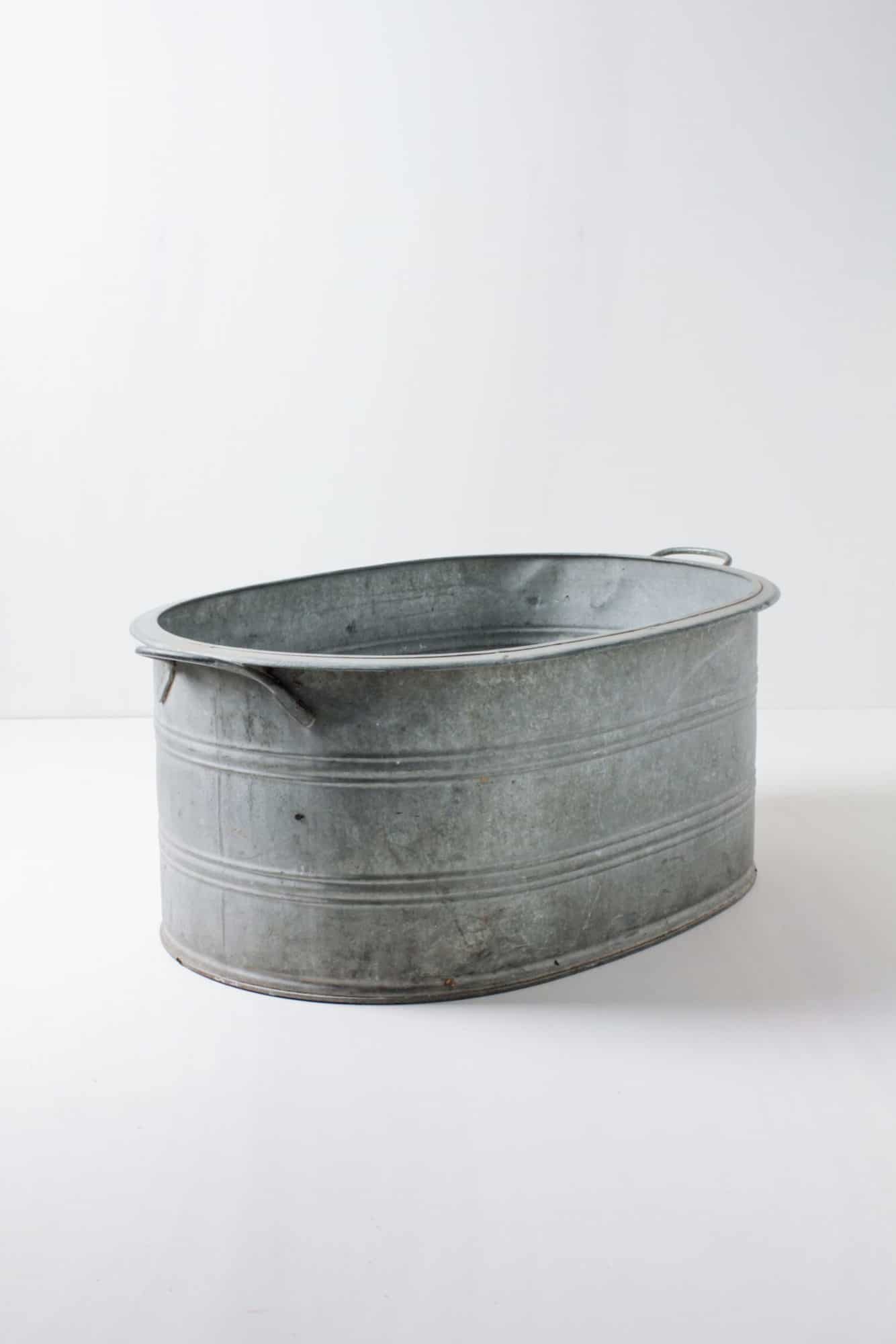 Eine Wanne aus Metall, in die eine Menge reinpasst. Ob als Blumenwanne für das Eventstyling, gekühlte Champagnerflaschen auf der Hochzeit oder mit viel Eiswürfeln als Getränkekühler für Events. Man kann auch einfach einige warme Decken für die Gäste bereit legen.