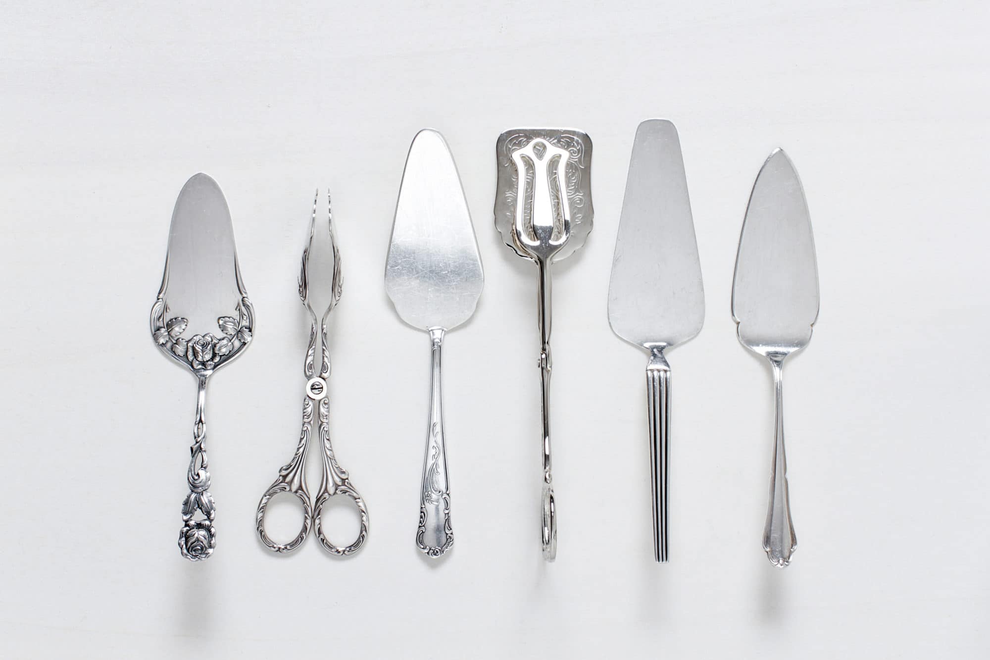 Die versilberte, Mismatching Sammlung der Antonia Tortenheber Serie ist für echte LiebhaberInnen und Detailverliebte. Du kannst bei uns verschiedene Tortenhebern, Kuchenzangen und Gebäckzangen mit unterschiedlichen Mustern mieten. Ein wunderschönes, versilbertes Besteck mit eleganter Patina.