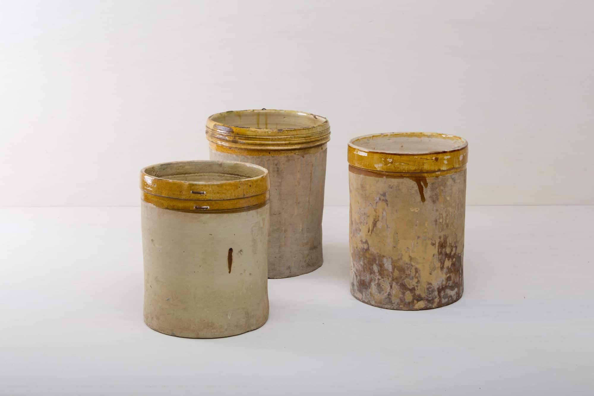 Terrekotta aus Süditalien. Die alten zylindrischen Vorratsgefässe stammen aus den 1920er Jahren und es wurden darin Gemüse in Öl und Essig gelagert. Nun gut gereinigt kannst Du die Gefäße als Vase für Dein Eventstyling oder Hochzeitsdekoration einsetzen.