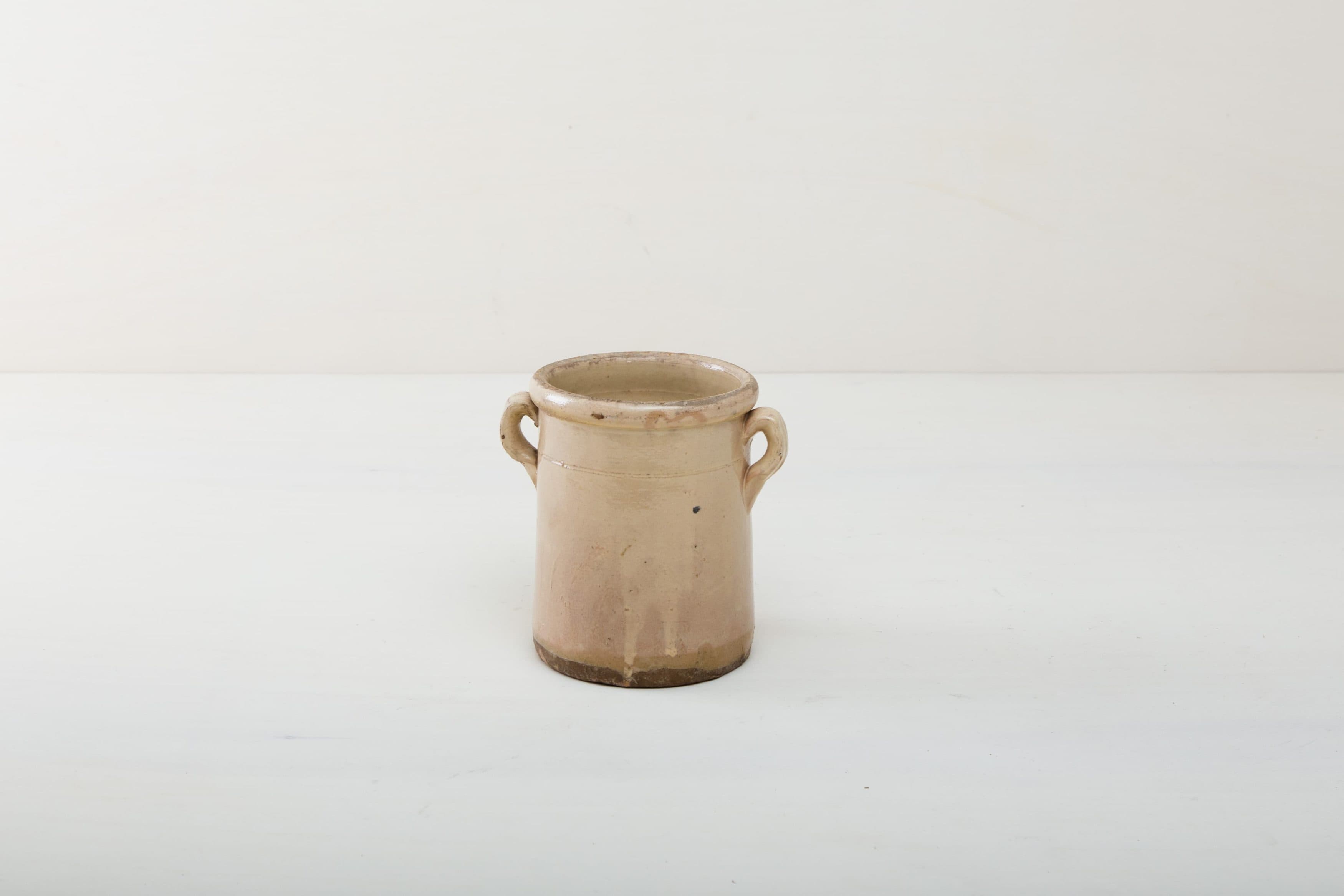 Robba bianca, Monochrome elfenbeinfarbene Glasur ist in Süditalien sehr beliebt. Die alten zylindrischen Vorratsgefässe stammen aus den 1920er Jahren und es wurden darin Gemüse in Öl und Essig gelagert. Nun gut gereinigt kannst Du die Gefäße als Vase für Dein Eventstyling oder Hochzeitsdekoration einsetzen.