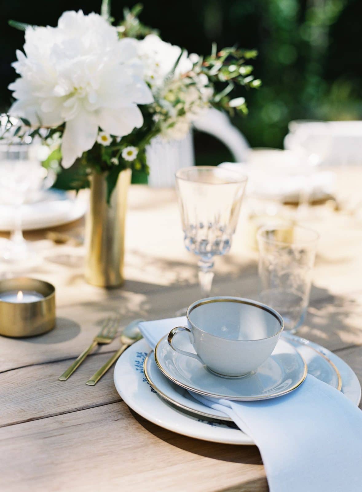 Die Hochzeit ist eines der schönsten Erlebnisse im Leben – kein Wunder also, dass auch wir von gotvintage möchten, dass an diesem besonderen Tag alles perfekt ist. Damit das Brautpaar dieses Ereignis in vollen Zügen genießen kann, kümmern wir uns gerne um das Event Styling vor Ort. So auch hier: In einem traumhaft schönen Garten bereiteten wir das Get-Together nach der Trauung im Standesamt vor. Die Gäste durften sich auf einen eleganten Lunch freuen, während die Kinder mit einem Picknick überrascht wurden. Wir hielten die Dekoration im klassischen Weiß und setzten auf goldfarbene und blaue Details. Ein rundum perfekter Tag – die Sonne strahlte nicht nur mit den Frischvermählten, sondern auch mit unseren Deko Highlights um die Wette.