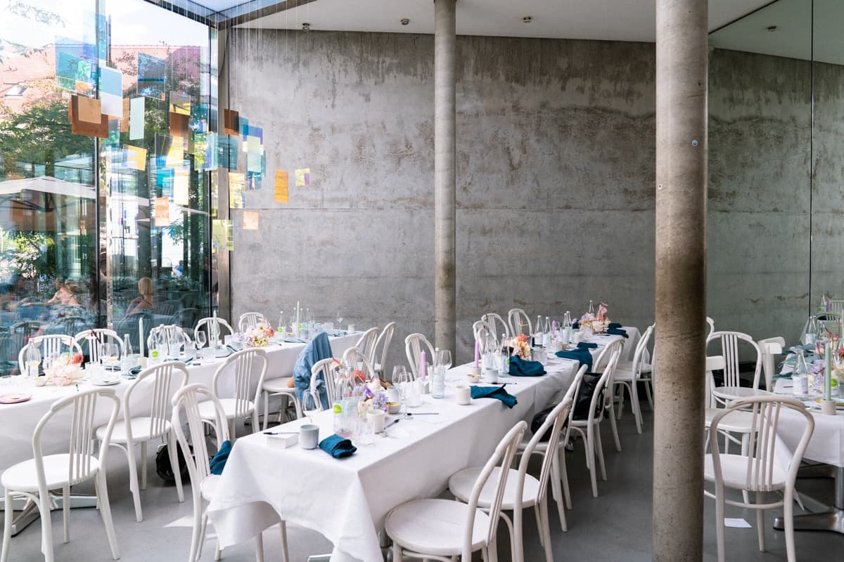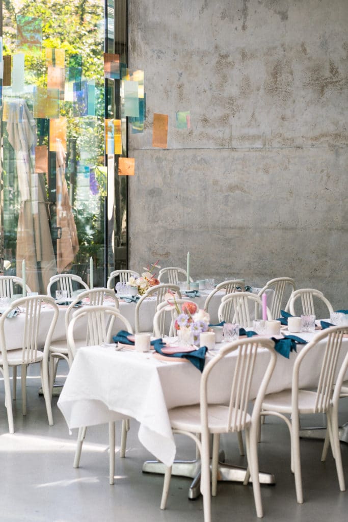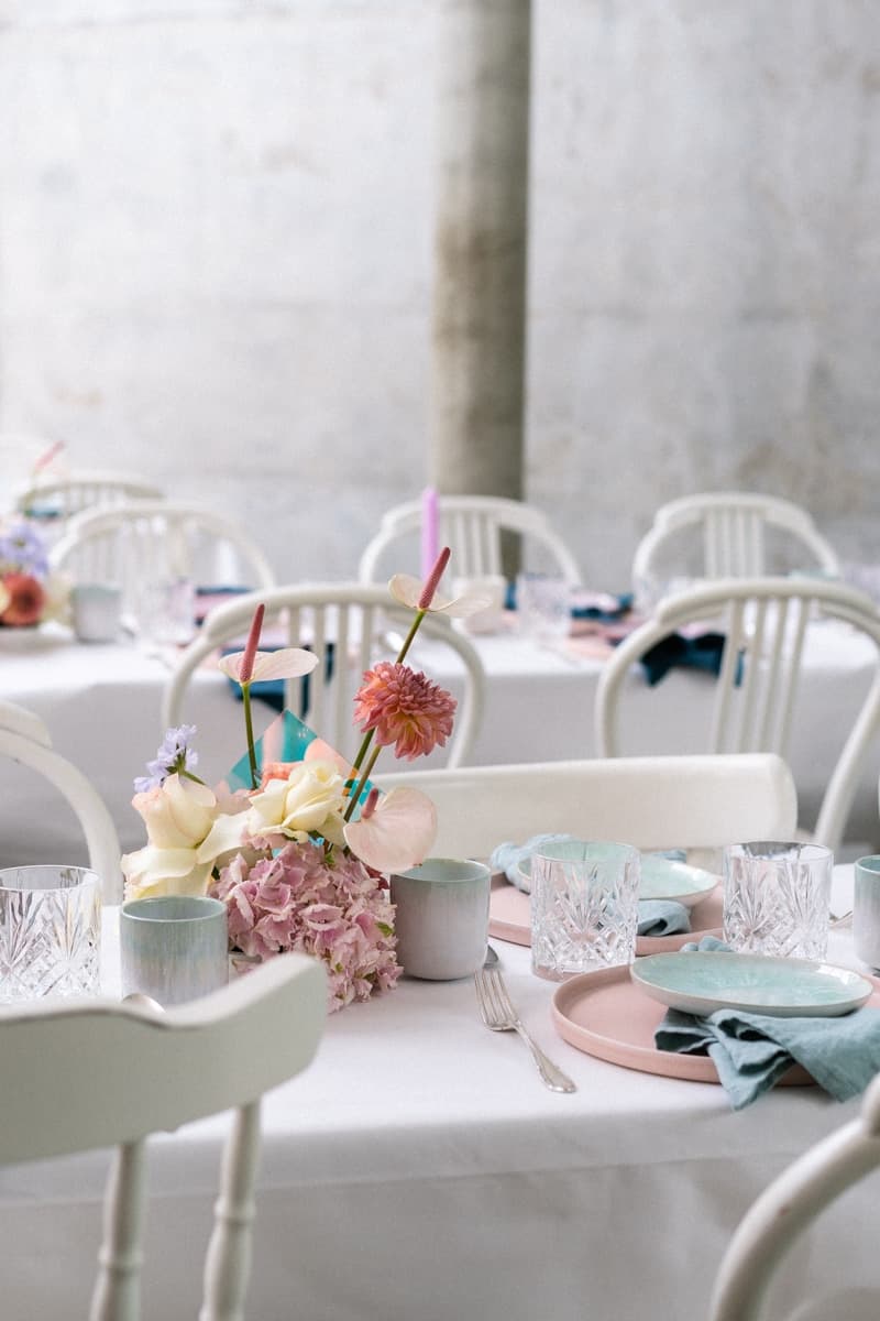 Bei der dritten Edition des Babes Brunch kamen wieder die unterschiedlichsten Frauen zusammen, um sich auszutauschen, zu inspirieren und zukünftig Synergien zu schaffen. Genau das spiegelte sich auch im Dekokonzept wider: Vintage Stücke wurden mit futuristisch angehauchten Elementen kombiniert – ein Stilmix, der sich perfekt ergänzt. Die Pastelltöne der Tischdekoration bildeten einen schönen Kontrast zu dem kühlen Ambiente der Location. Die langen Tafeln luden die Unternehmerinnen zum beruflichen und privaten Austausch ein.