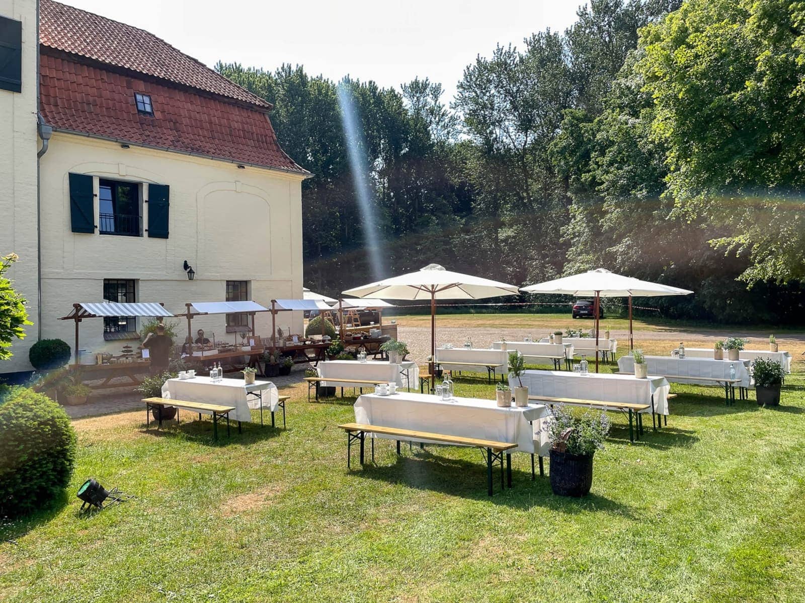 Warum Outdoor Möbel in Berlin mieten und in den Norden transportieren, wenn es eine so stimmungsvolle und genuine Alternative in der Nähe gibt? Also stimmten wir uns mit den Auftraggebern schon bei der Planung der Veranstaltung und Erstbesichtigung der Eventlocation auf eine umwelt- und ressourcenschonende Lösung ab und recherchierten und kontaktierten die umliegenden Bauernbetriebe