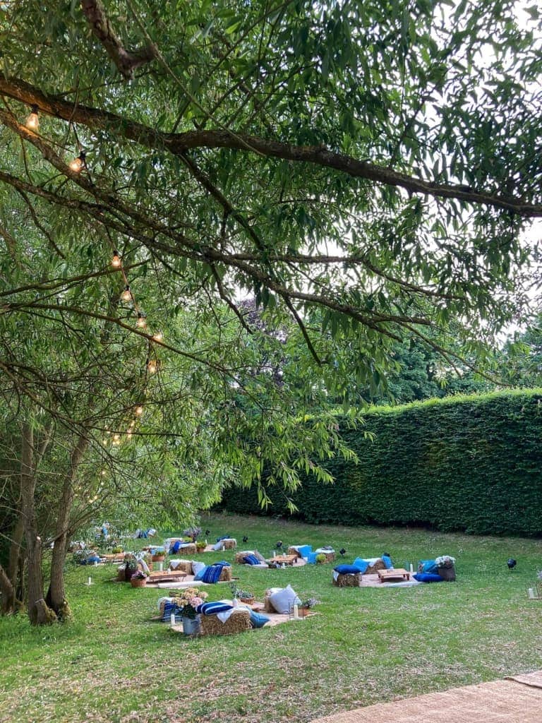 mit unserer ungewöhnlichen Leihanfrage. Abgerundet mit unseren mitgebrachten Vintage Picknickdecken und gemütlichen Leinensitzkissen „Cosme“ tauchten die Gäste in die sommerliche Landidylle schon direkt bei Ankunft ein.