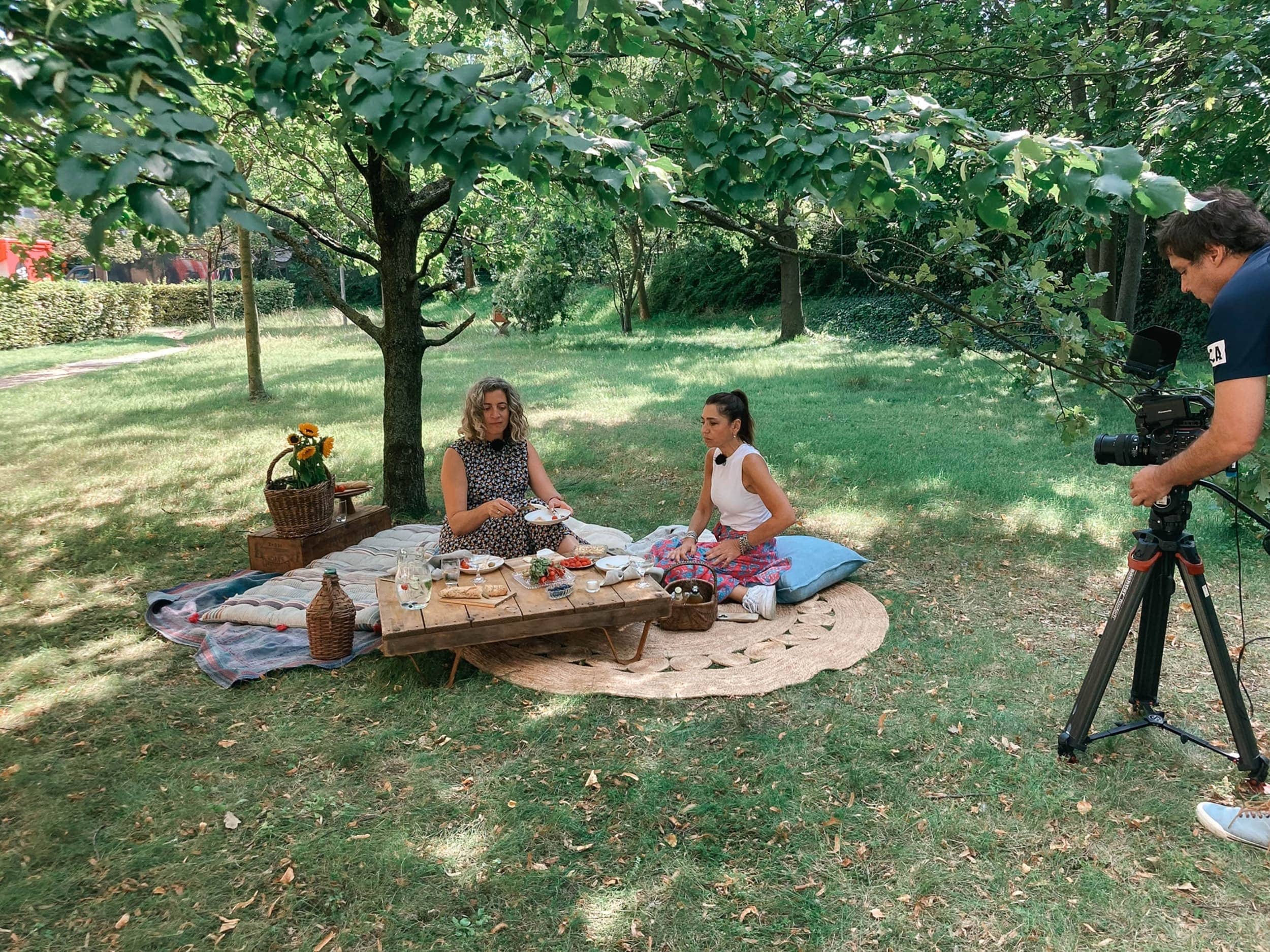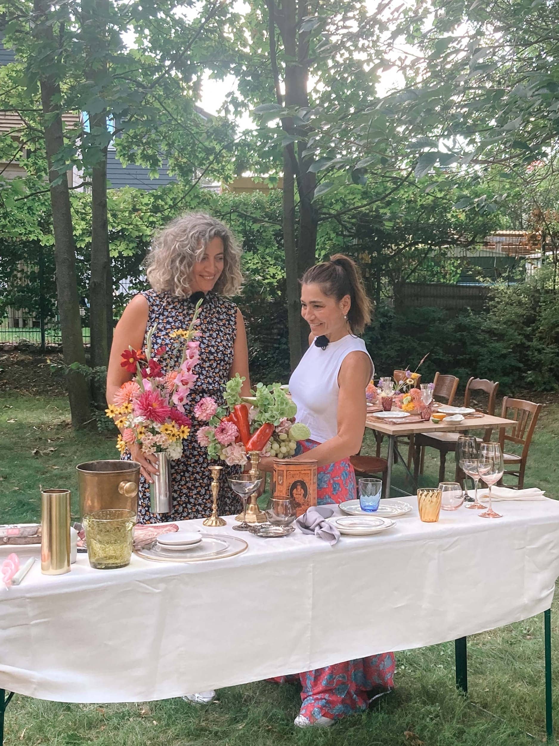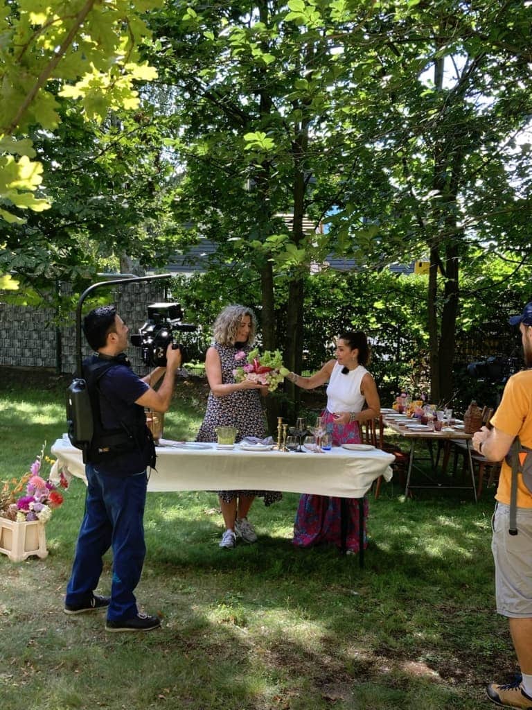 Es ist Spätsommer. gotvintage-Gründerin und Geschäftsführerin Marga legt die letzten Handgriffe an die Tischdekoration an und streicht ihr Kleid gerade. Im grünen Innenhof, direkt hinter unserem Lager, haben wir verschiedene sommerliche Settings für unseren Besuch dekoriert. Pia Castro kommt mit ihrem Filmteam für ihr Deutsche Welle-Format „¡Aquí Estoy!“ vorbei, das argentinische Gründer*innen in Berlin und deren Unternehmen vorstellt. Ausgelassen unterhalten sie sich in einer Picknick- und Gartenparty-Atmosphäre über Margas Geschäftsmodell, die 10 jährige Erfolgsgeschichte ihres Dekoverleihs und über ihre Leidenschaft für ästhetische Vintage Designs und außergewöhnliche Eventdekorationen.