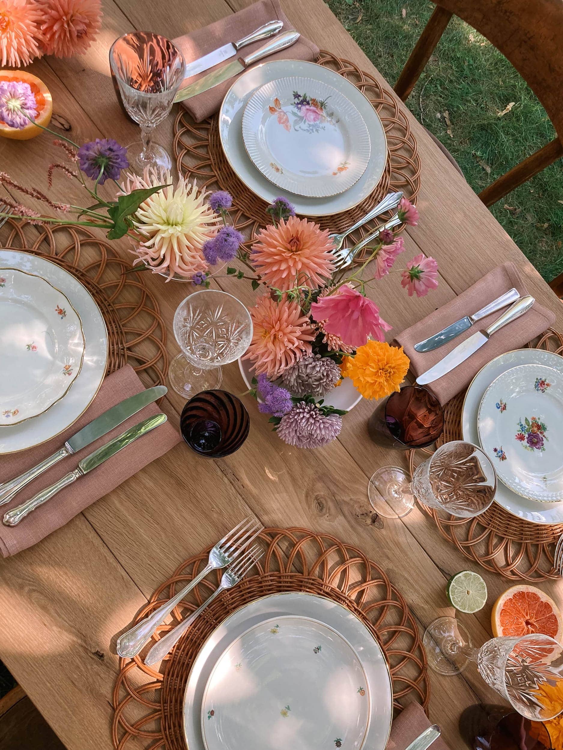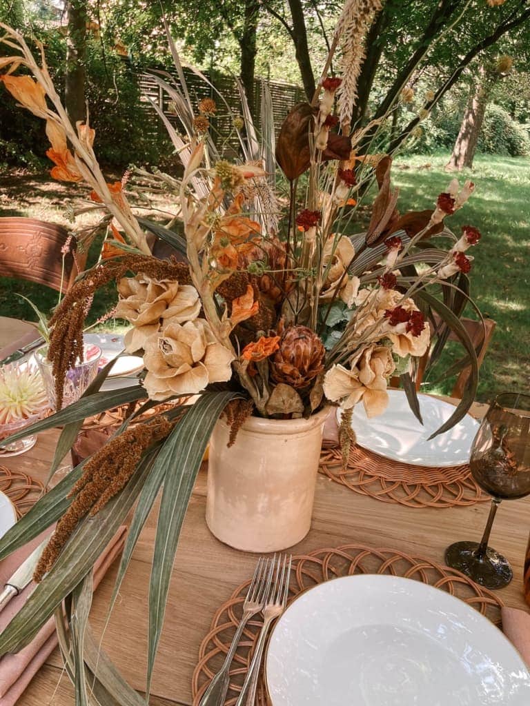 Mit drei wechselnden Blumendekorationen verwandelten wir den Tischschmuck der Tafel mit wenigen Handgriffen und variierten saisonal akzentuierte Tischdekos. Wir kombinierten ein Frühlingsblumen-Arrangement mit frischen Paprikas und Früchten, einen sommerlichen, regionalen Wild- und Wiesenblumenstrauß und herbstliche Trockenblumen, die für uns durch ihre Wiederverwendbarkeit und Langlebigkeit ganz im Zeichen nachhaltiger Eventdesigns stehen. Für eine tiefenentspannte Interview Atmosphäre zeigten wir uns mit unserer Picknick-Lounge von der gemütlichen Seite. Bequem ausgestattet mit unseren Outdoor-Mietmöbeln, Kissen, Decken und Teppichen werden sie oft für legere Firmenfeiern oder Geburtstagspartys angefragt.