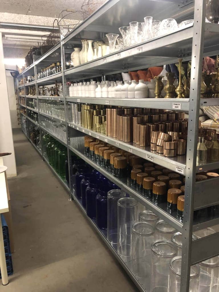 Anschließend öffneten wir die Tore zu unserer Mehrgenerationen-WG, die von 8.500 Gläsern, mitunter 850 Speisetellern und unzähligen handverlesenen, modernen und vintage Dekoartikeln und Mietmöbeln bewohnt wird. Über 10 Jahre hingebungsvoll zusammengetragen, aufpoliert, repariert und restauriert, ermöglicht diese Vielfalt an Unikaten Marga’s markante Mischung der Stile. Unerschrocken kombiniert und zweckentfremdet sie Vintage-Elemente verschiedenster Designepochen, kreiert damit neue und unkonventionelle Kontexte und kann tatsächlich zu jedem Objekt eine Geschichte erzählen. Diese enge Verbundenheit zu ihrem Fundus und ihre Leidenschaft und Erfahrung als Designerin sind in jedem ihrer Eventkonzepte deutlich spürbar und wurden dank der Deutschen Welle nun auch von einer Kamera eingefangen.